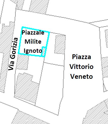 Il secondo gesto è stato quello di intitolare al “Milite Ignoto – Medaglia d’Oro al Valor Militare”, la piazzetta situata tra via Gorizia e piazza Vittorio Veneto.